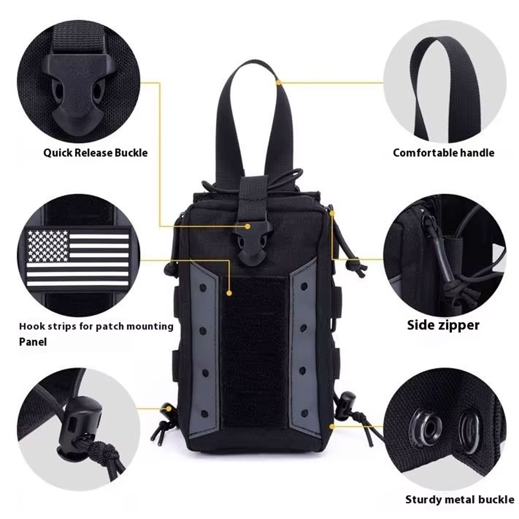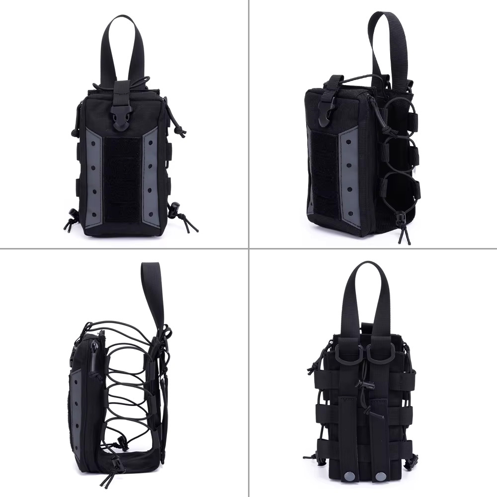 Die Tasche ist verstellbar und verfügt über eine Klettfläche auf der Vorderseite, an der Patches oder Abzeichen zur Identifikation oder Personalisierung befestigt werden können. Die robuste Konstruktion ist für anspruchsvolle Einsatzbereiche wie Militär, Sicherheitsdienst, Jagd, Outdoor-Aktivitäten und Airsoft ausgelegt.