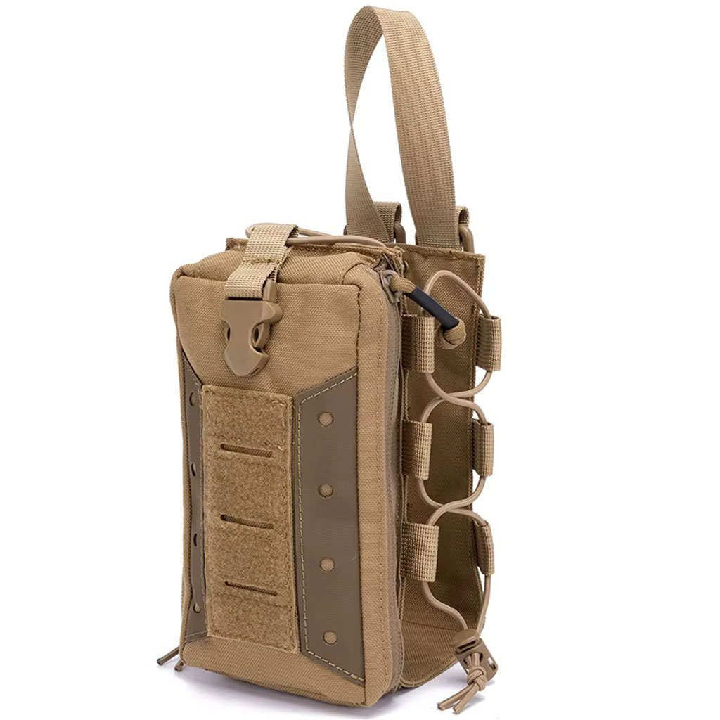 Diese taktische Wasserflaschentasche wurde für Nutzer entwickelt, die während ihrer Aktivitäten schnellen und sicheren Zugriff auf Wasser benötigen. Dank des integrierten MOLLE-Systems kann die Tasche einfach an taktischen Rucksäcken, Westen oder anderer kompatibler Ausrüstung befestigt werden.